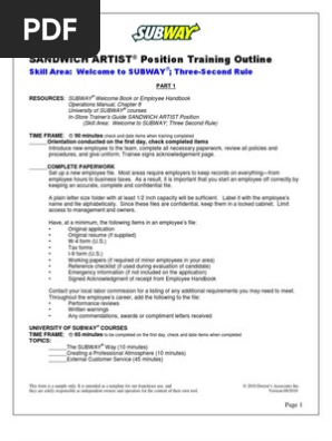 Sandwich Artist Training Outline1 Pdf Public Toilet Baking
